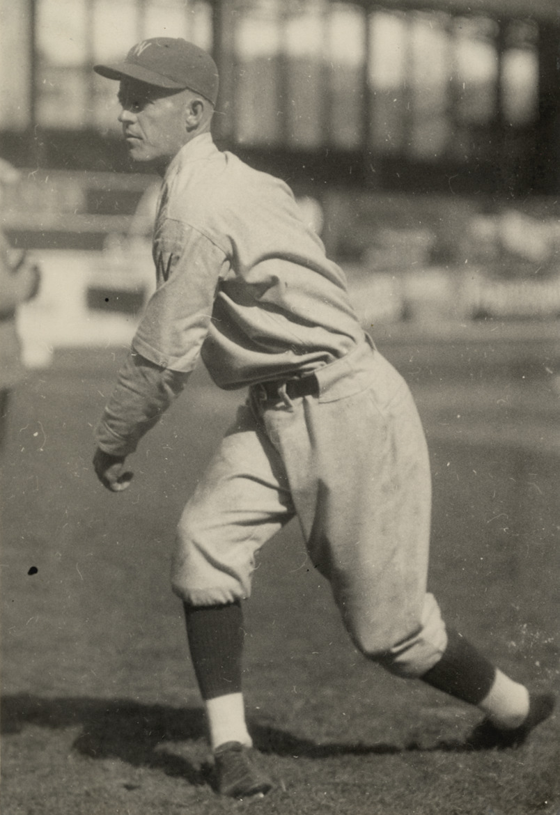 Portrait of Dutch Ruether, pitcher for the Washington Senators. Stamped on back: "Charles M. Conlon, photographer for Spalding's guide and baseball magazine." Handwritten on back: "Walter H. Ruether, Washington."