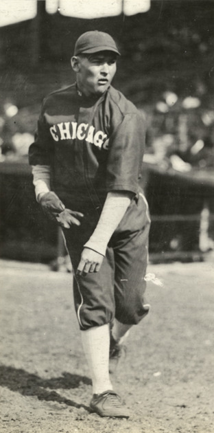Portrait of Reb Russell, pitcher for the Chicago White Sox. Handwritten on back: "E.A. Russell."