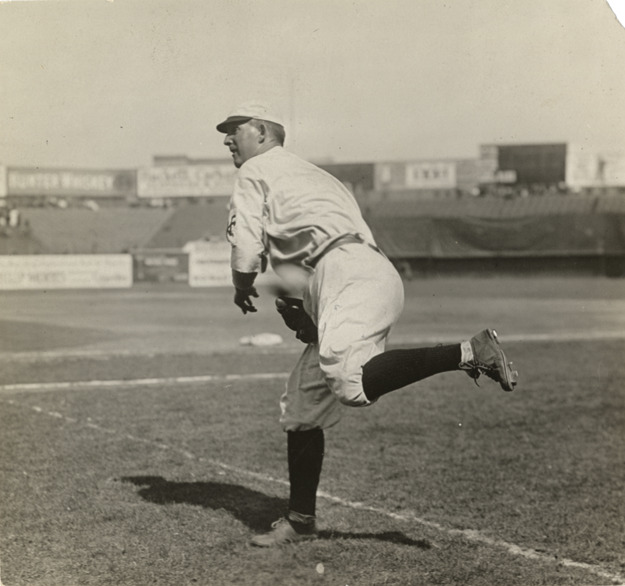 Portrait of Cy Seymour, baseball player for the New York Giants. Handwritten on back: "Seymour, N.Y. Nat." Stamped on back of duplicate: "Charles M. Conlon, 216 W. 111th St., New York." Handwritten on back of duplicate: "Cy Seymour, New York Nat., outfield, 1909."