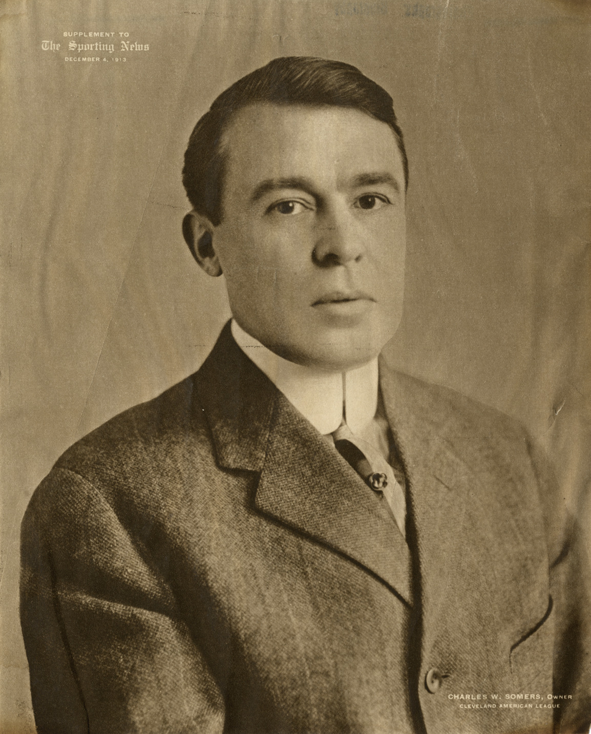 Favorite this☆ Charles Somers Description: Portrait of Charles Somers, owner of the Cleveland Naps. Printed on front: "Charles W. Somers, owner. Cleveland American League. Supplement to the Sporting News, December 4, 1913." Details Resource ID: hr003787 Subject: Somers, Charles W., 1869-1934 Baseball team owners--Ohio--Cleveland Cleveland Naps (Baseball team) Photographic prints Date Issued: 1913 Format: 1 photographic print ; 9.75 x 7.75 in. Member of: Ernie Harwell Sports Collection Filing Location: Photographs-Biography-Somers, Charles Rights: Physical rights are retained by DPL. Copyright is retained in accordance with U.S. copyright laws.