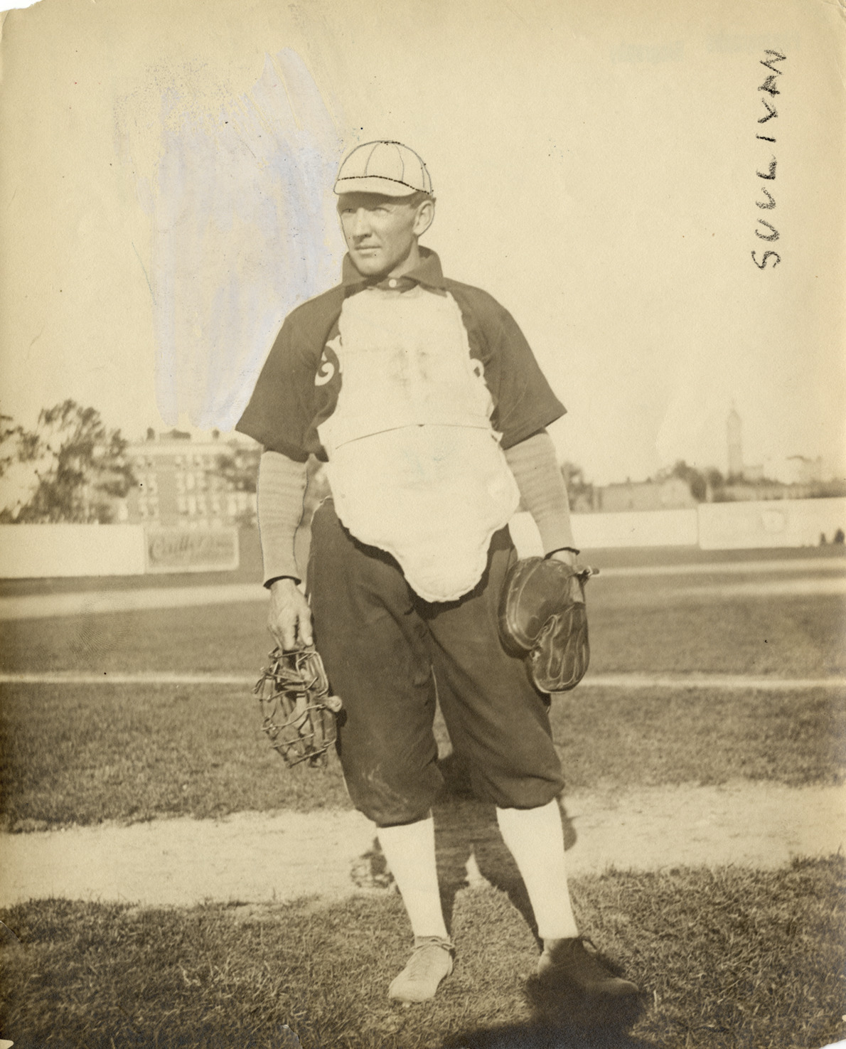 Favorite this☆ Billy Sullivan Description: Portrait of Billy Sullivan, catcher for the Chicago White Sox. Handwritten on front: "Sullivan." Stamped on back: "Charles M. Conlon, 189 Alden Place, Englewood, N.J." Handwritten on back: "Billy Sullivan, Chicago Am., C.M. Conlon." Details Resource ID: hr003852 Creator: Conlon, Charles M. Subject: Sullivan, Billy (William Joseph), 1875-1965 Catchers (Baseball)--Illinois--Chicago Chicago White Sox (Baseball team) Photographers--New Jersey--Englewood Photographic prints Date Issued: 1901 to 1914 Format: 1 photographic print ; 10 x 8 in. Member of: Ernie Harwell Sports Collection Filing Location: Photographs-Biography-Sullivan, William (Billy) Rights: Physical rights are retained by DPL. Copyright is retained in accordance with U.S. copyright laws.
