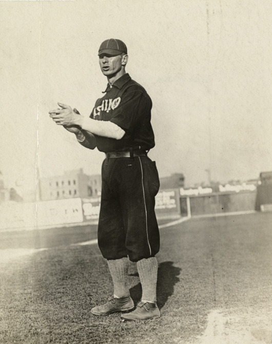 Portrait of Bob Unglaub, baseball player for the Washington Senators. Handwritten on back: "Bob Unglaub, White Sox [sic]." Stamped on back of duplicate: "Charles M. Conlon, 216 W. 111th St., New York." Handwritten on back of duplicate: "Bob Unglaub, Washington, 1908."