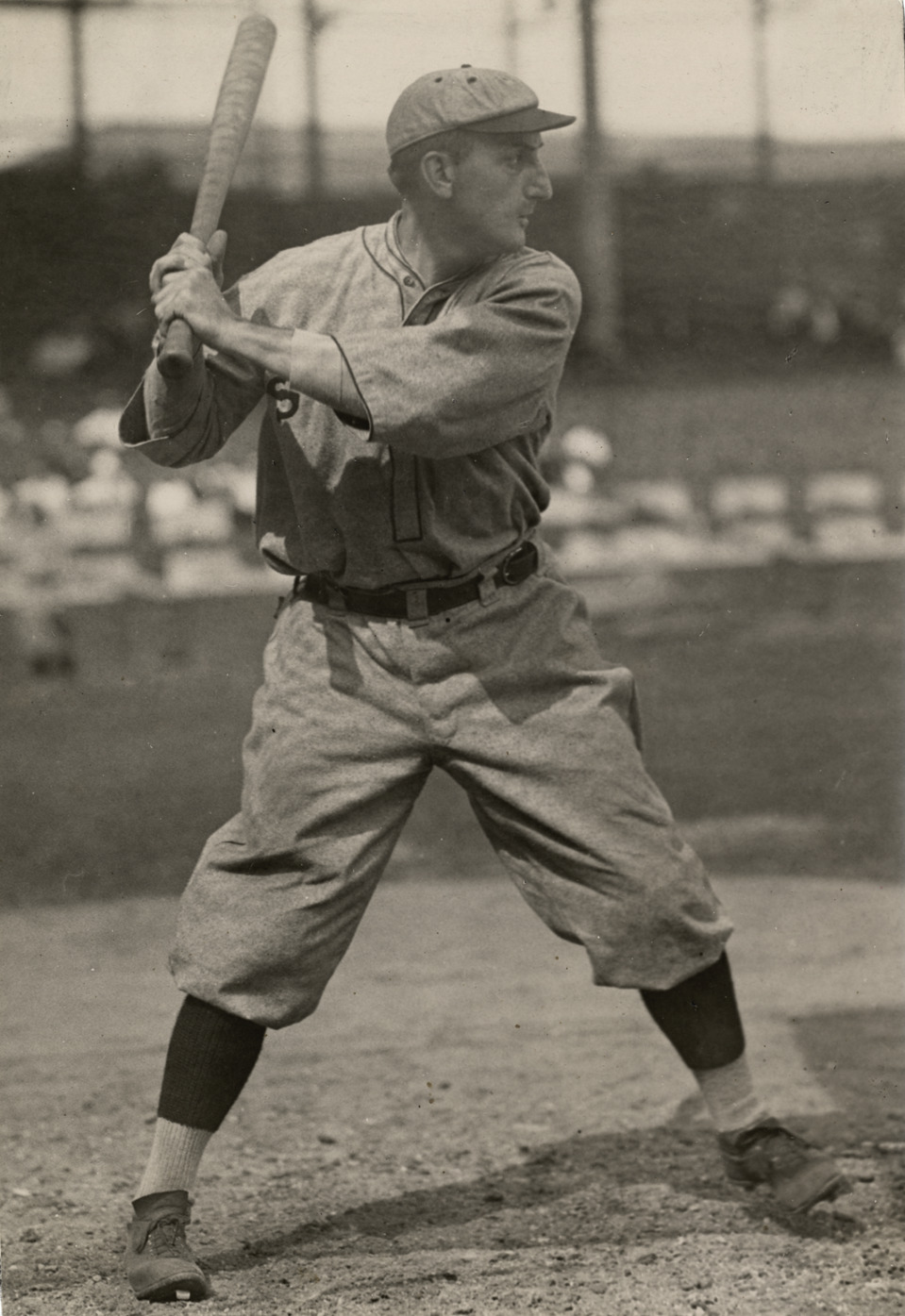 Favorite this☆ Bobby Wallace Description: Portrait of Bobby Wallace, baseball player for the St. Louis Browns, at bat. Handwritten on back: "Rhody Wallace, St. Louis Am." Details Resource ID: hr003935 Subject: Wallace, Bobby (Rhoderick John), 1873-1960 Baseball players--Missouri--Saint Louis St. Louis Browns (Baseball team) Photographic prints Date Issued: 1902 to 1916 Format: 1 photographic print ; 9.5 x 6.5 in. Member of: Ernie Harwell Sports Collection Filing Location: Photographs-Biography-Wallace, Bobby (Rhody) Rights: Physical rights are retained by DPL. Copyright is retained in accordance with U.S. copyright laws.