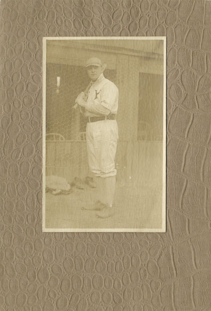 Portrait of Jimmy Williams, baseball player for the New York Highlanders, holding a baseball bat. Handwritten on back: "J. Williams, N.Y. American's."