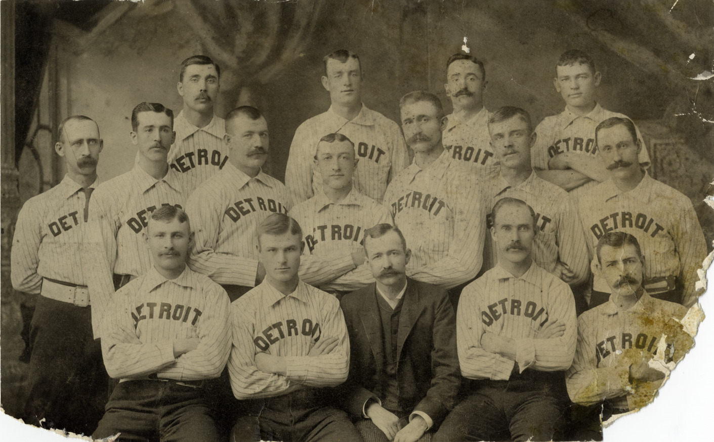 Favorite this☆ Detroit Wolverines Description: Group portrait of the Detroit Wolverines posing with manager. Details Resource ID: hr004172 Subject: Baseball teams--Michigan--Detroit Baseball players--Michigan--Detroit Photographic prints Date Issued: Unknown year Format: 1 photographic print ; 6 x 9.5 in. Member of: Ernie Harwell Sports Collection Filing Location: Photographs-Teams-Detroit Wolverines Rights: Physical rights are retained by DPL. Copyright is retained in accordance with U.S. copyright laws.