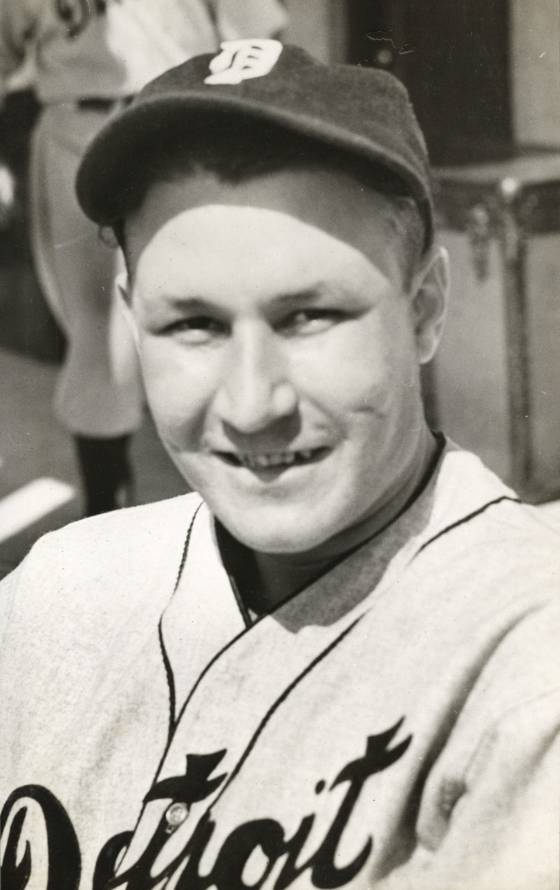 Favorite this☆ Rudy York Description: Portrait of Rudy York, baseball player for the Detroit Tigers. Typed on label: "Rudolph P. York, 1934-." Dates on label reflect affiliation with Detroit Tigers. Details Resource ID: hr004376 Subject: York, Rudy (Preston Rudolph), 1913-1970 Baseball players--Michigan--Detroit Detroit Tigers (Baseball team) Photographic prints Date Issued: 1934 to 1945 Format: 1 photographic print mounted on stock ; image 8.75 x 5.5 in. Member of: Ernie Harwell Sports Collection Filing Location: Oversize SB/Photographs-Detroit Tigers, 1930-1940 Note (Content): Photograph from scrapbook of Detroit Tigers baseball players and managers from 1930-1940 Rights: Physical rights are retained by DPL. Copyright is retained in accordance with U.S. copyright laws.