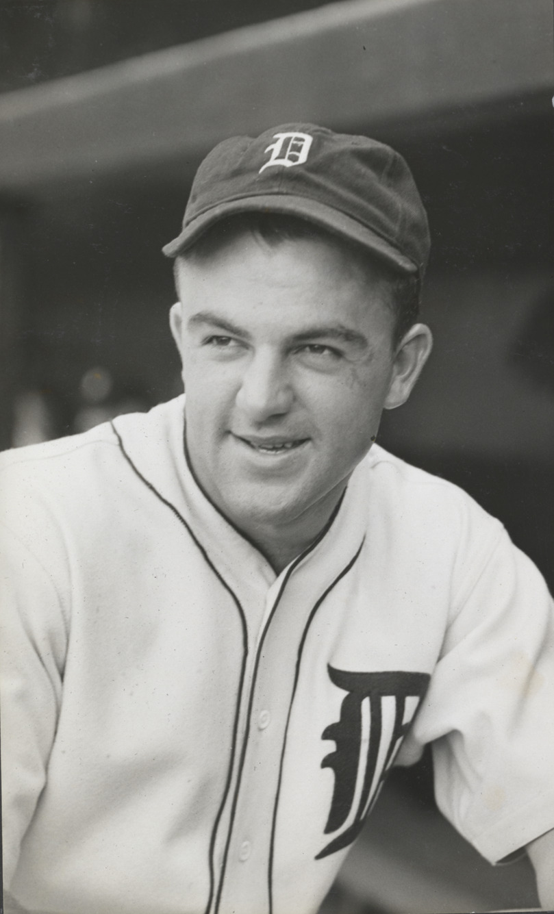 Portrait of Boots Poffenberger, pitcher for the Detroit Tigers. Typed on label: "Cletus Poffenberger, 1937-38." Dates on label reflect affiliation with Detroit Tigers.