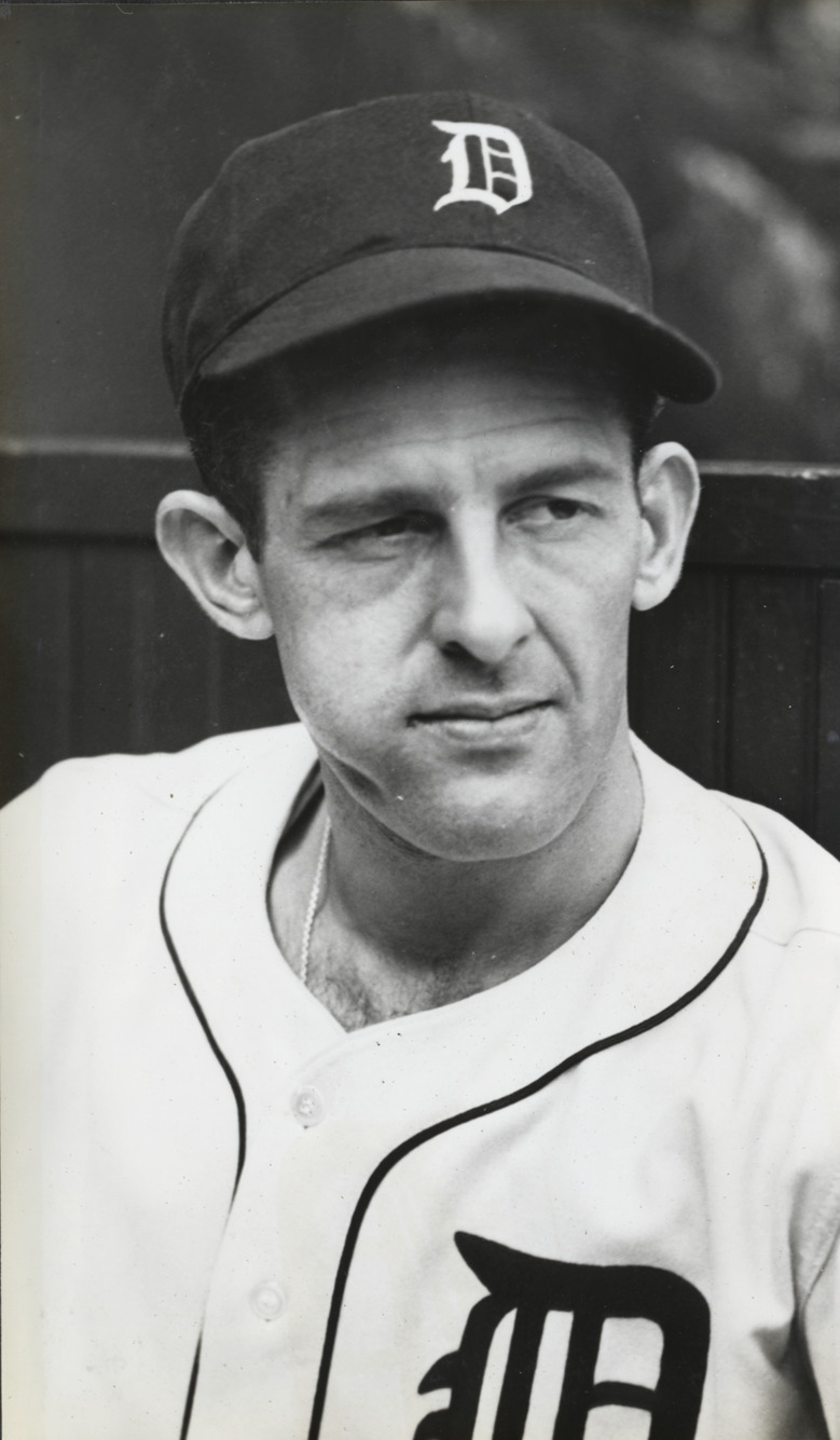 Portrait of Bob Uhl, pitcher for the Detroit Tigers. Typed on label: "Robert E. Uhle [sic], 1940-." Dates on label reflect affiliation with Detroit Tigers.