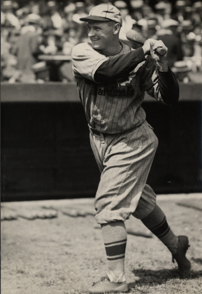 Favorite this☆ Bob O'Farrell Description: Portrait of Bob O'Farrell, baseball player for the St. Louis Cardinals, swinging a baseball bat. Typed on label: "Robert A. O'Farrell, Cardinals, 1926." Details Resource ID: hr004480 Subject: O'Farrell, Bob (Robert Arthur), 1896-1988 Baseball players--Missouri--Saint Louis St. Louis Cardinals (Baseball team) World Series (Baseball) (1926) Photographic prints Date Issued: 1926 Format: 1 photographic print mounted on stock ; image 8 x 5.5 in. Member of: Ernie Harwell Sports Collection Filing Location: Oversize SB/Photographs-World Series, 1926-1931 Note (Content): Photograph from scrapbook of World Series, 1926-1931 Rights: Physical rights are retained by DPL. Copyright is retained in accordance with U.S. copyright laws.