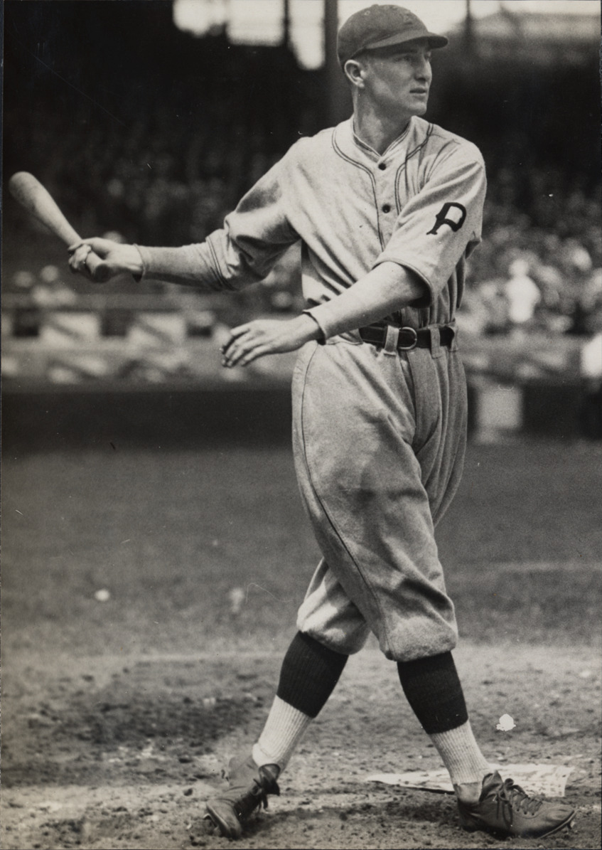 Favorite this☆ Paul Waner Description: Portrait of Paul Waner, baseball player for the Pittsburgh Pirates, swinging a baseball bat. Typed on label: "Paul G. Waner, Pittsburgh, 1927." Details Resource ID: hr004521 Subject: Waner, Paul, 1903-1965 Baseball players--Pennsylvania--Pittsburgh Pittsburgh Pirates (Baseball team) World Series (Baseball) (1927) Photographic prints Date Issued: 1927 Format: 1 photographic print mounted on stock ; image 8 x 5.75 in. Member of: Ernie Harwell Sports Collection Filing Location: Oversize SB/Photographs-World Series, 1926-1931 Note (Content): Photograph from scrapbook of World Series, 1926-1931 Rights: Physical rights are retained by DPL. Copyright is retained in accordance with U.S. copyright laws.