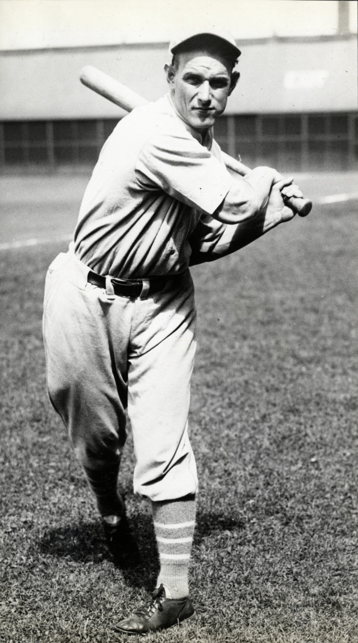Portrait of Dib Williams, baseball player for the Philadelphia Athletics, holding a baseball bat. Typed on label: "Dibrell Williams, Athletics, 1930."