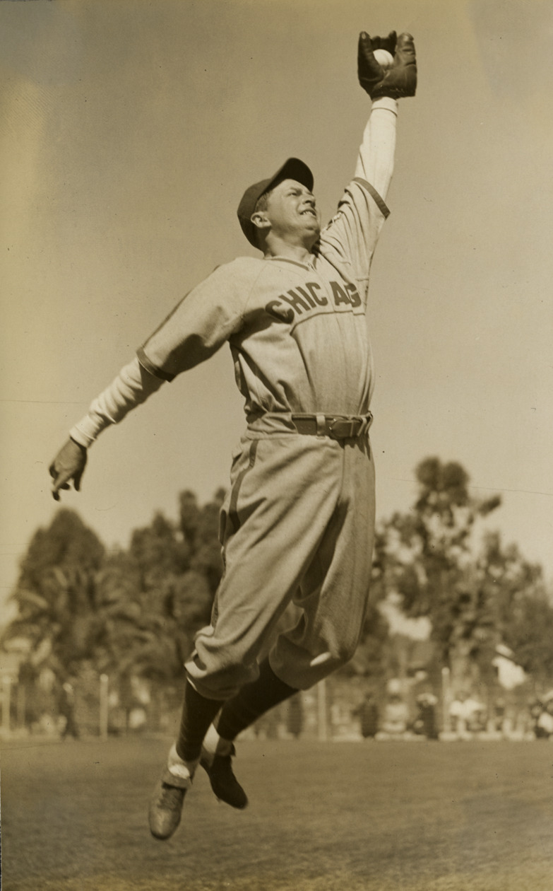 Favorite this☆ Stan Hack Description: Portrait of Stan Hack, baseball player for the Chicago Cubs, jumping for a fly ball. Typed on label: "Stanley C. Hack, Cubs, 1932." Details Resource ID: hr004708 Subject: Hack, Stan (Stanley Camfield), 1909-1979 Baseball players--Illinois--Chicago Chicago Cubs (Baseball team) World Series (Baseball) (1932) Photographic prints Date Issued: 1932 Format: 1 photographic print mounted on stock ; image 8.5 x 5.25 in. Member of: Ernie Harwell Sports Collection Filing Location: Oversize SB/Photographs-World Series, 1932-1934 Note (Content): Photograph from scrapbook of World Series, 1932-1934 Rights: Physical rights are retained by DPL. Copyright is retained in accordance with U.S. copyright laws.