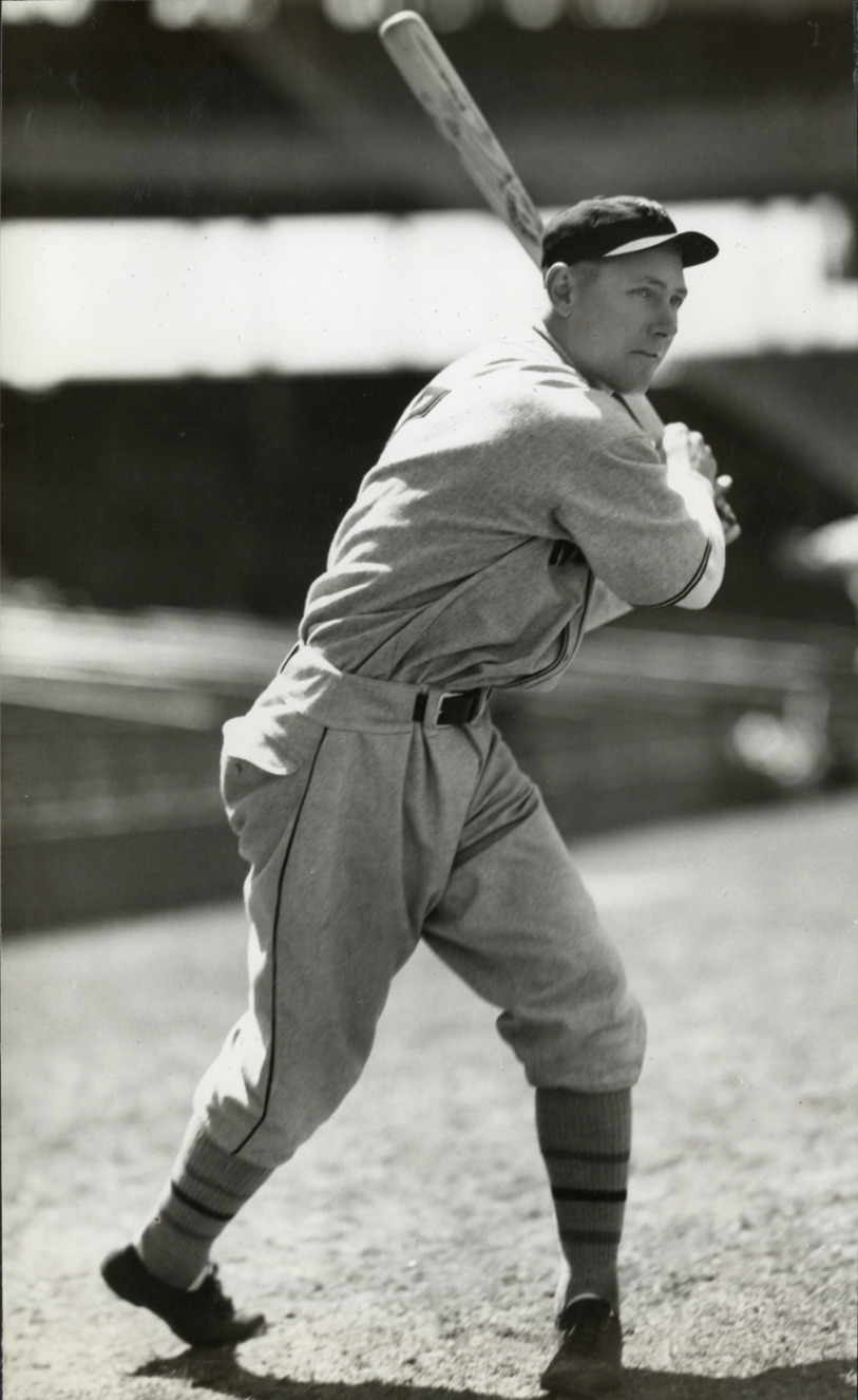 Portrait of Kiddo Davis, baseball player for the New York Giants, at bat. Typed on label: "George W. Davis, Giants, 1933."