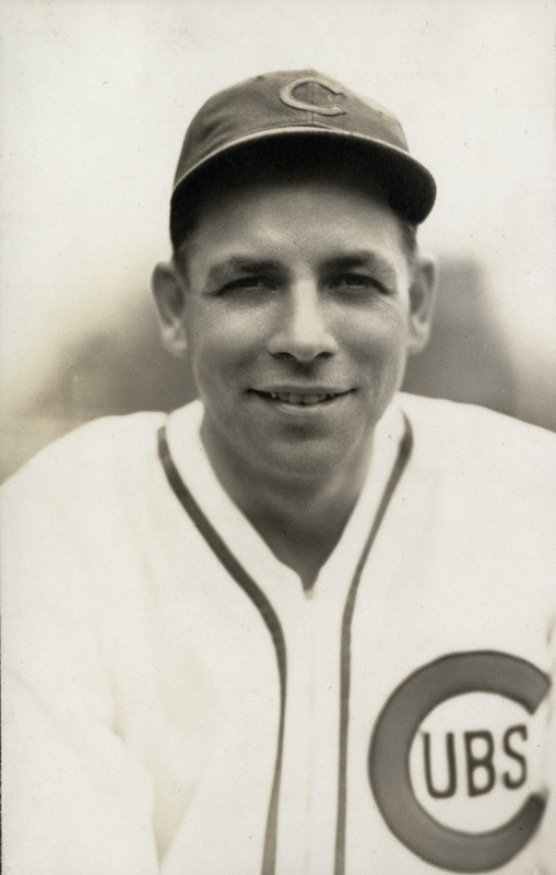 Portrait of pitcher Roy Parmelee, wearing a Chicago Cubs uniform. Typed on label: "Leroy Parmelee, Giants, 1933." Dates on label reflect affiliation with New York Giants.