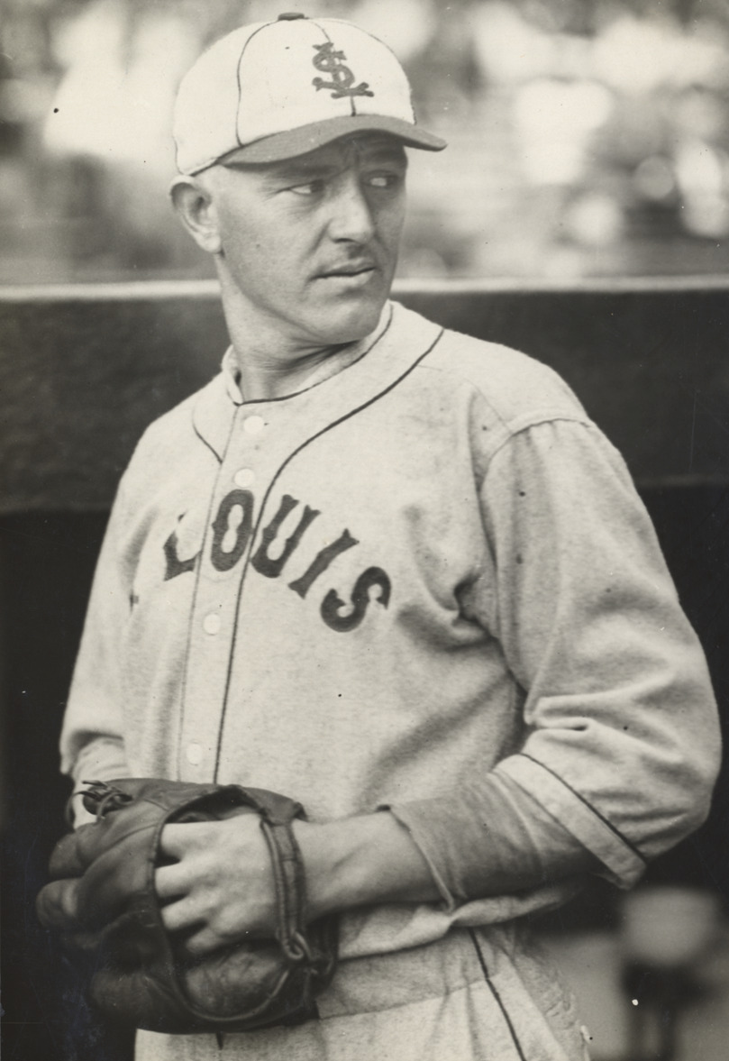 Portrait of pitcher Alvin Crowder wearing a St. Louis Browns uniform. Typed on label: "Alvin F. Crowder, Washington, 1933." Dates on label reflect affiliation with Washington Senators.