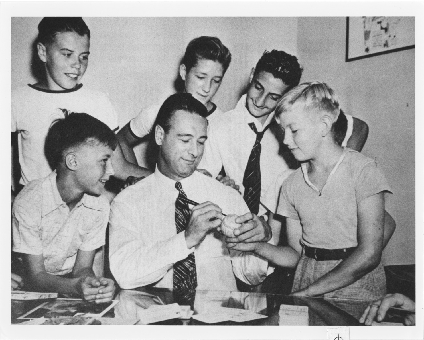 Favorite this☆ Lou Gehrig autographing baseball Description: Portrait of Lou Gehrig, baseball player for the New York Yankees, autographing a baseball for group of young boys. Details Resource ID: hr004837 Subject: Gehrig, Lou, 1903-1941 Baseball players--New York (State)--New York New York Yankees (Baseball team) Baseball fans Baseballs Photographic prints Date Issued: 1923 to 1939 Format: 1 photographic print ; 8 x 10 in. Member of: Ernie Harwell Sports Collection Filing Location: Photographs-Biography-Gehrig, Louis (Lou) Rights: Physical rights are retained by DPL. Copyright is retained in accordance with U.S. copyright laws.