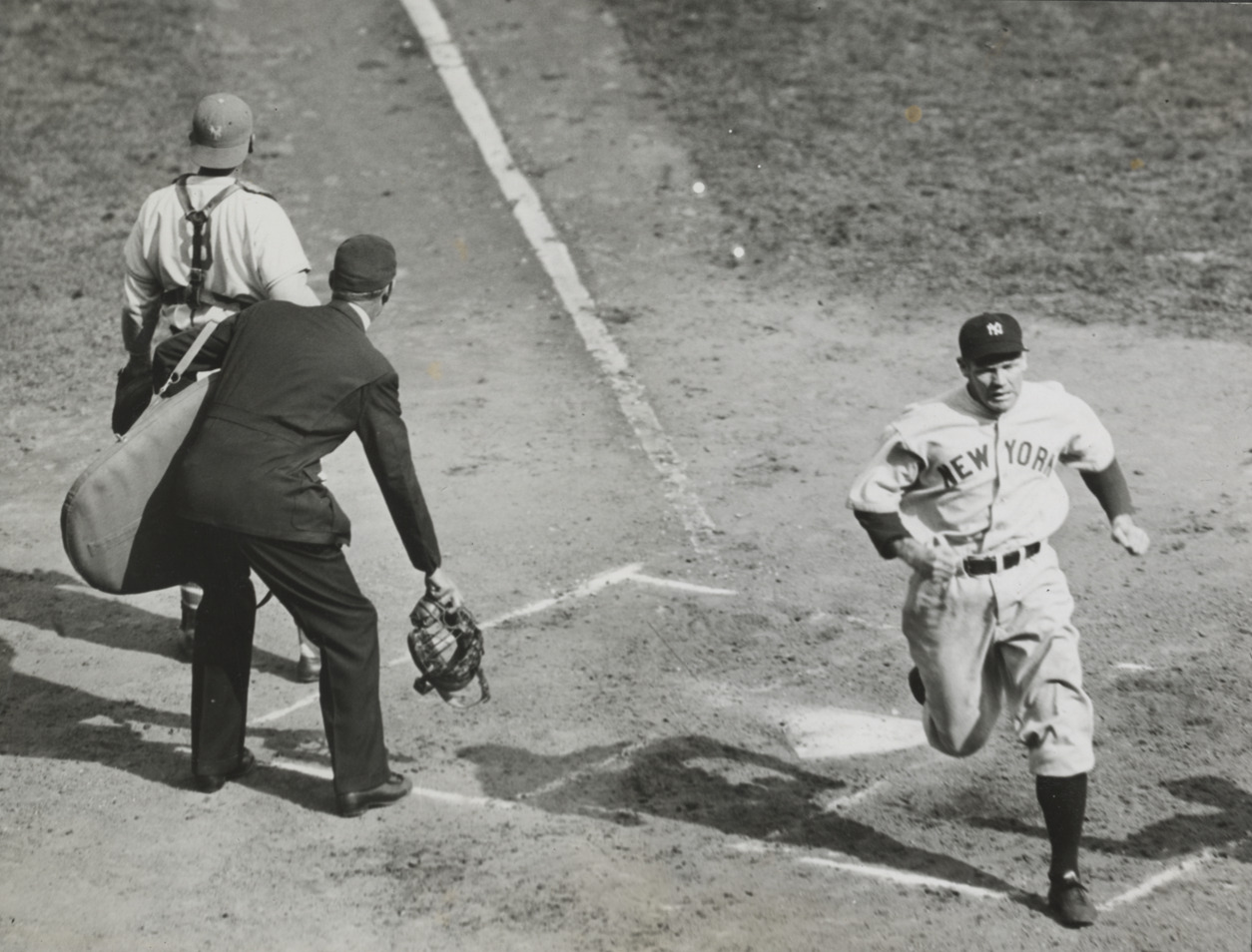 Favorite this☆ Red Rolfe Description: View of Red Rolfe, baseball player for the New York Yankees, running to home plate. Catcher and umpire stand behind plate. Typed on label: "Robert A. Rolfe, Yankees, 1937." Details Resource ID: hr004937 Subject: Rolfe, Red, 1908-1969 Baseball players--New York (State)--New York New York Yankees (Baseball team) World Series (Baseball) (1937) Photographic prints Date Issued: 1937 Format: 1 photographic print mounted on stock ; image 6.5 x 8.5 in. Member of: Ernie Harwell Sports Collection Filing Location: Oversize SB/Photographs-World Series, 1935-1937 Note (Content): Photograph from scrapbook of World Series, 1935-1937 Rights: Physical rights are retained by DPL. Copyright is retained in accordance with U.S. copyright laws.