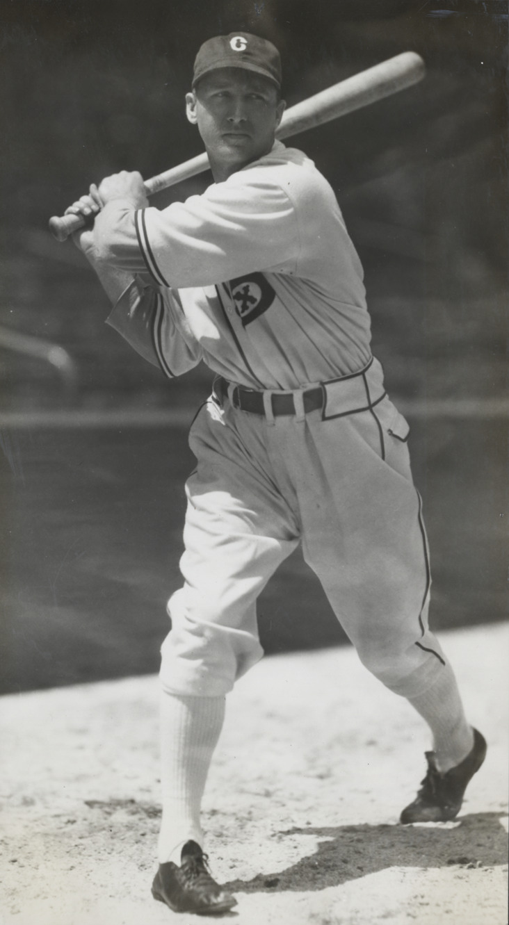 Portrait of baseball player Dixie Walker, wearing a Chicago White Sox uniform and holding a baseball bat. Typed on label: "Fred Walker, Brooklyn, 1941." Dates on label reflect affiliation with Brooklyn Dodgers.