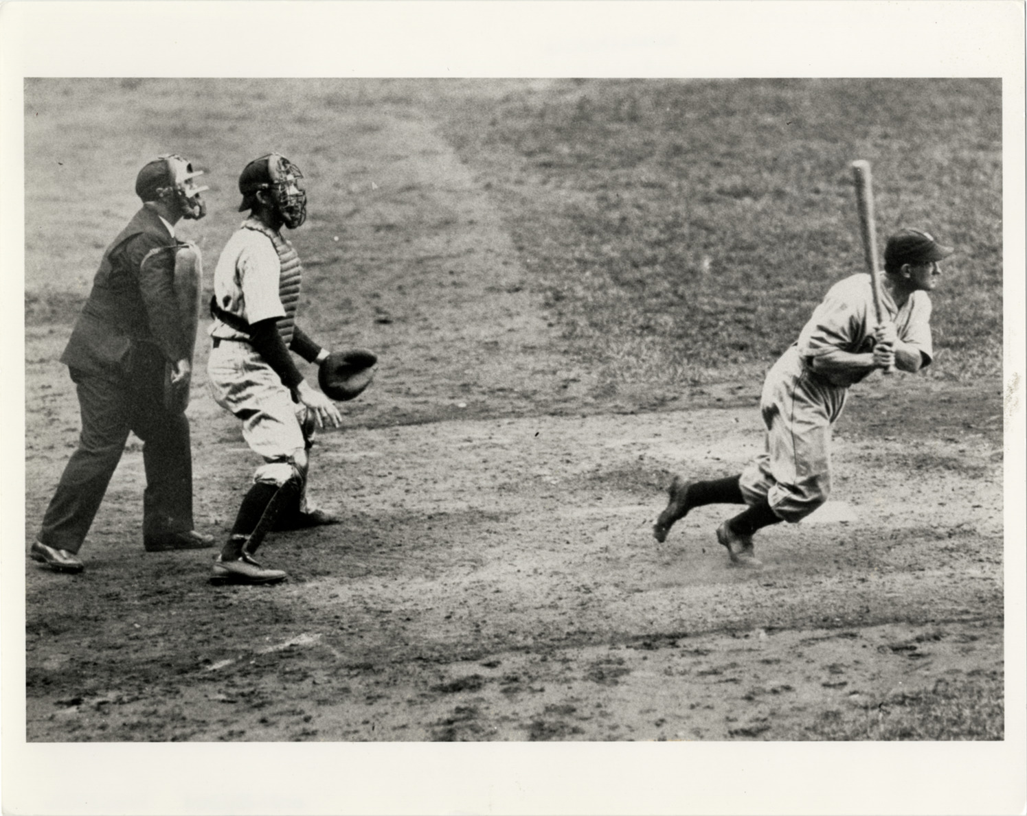 Favorite this☆ Mickey Cochrane batting Description: Mickey Cochrane batting and starting to run bases, with catcher and umpire behind. Typed on label on back: "Mickey Cochrane singles in Yankee Stadium, July 1935." Details Resource ID: hr005056 Subject: Cochrane, Mickey, 1903-1962 Catchers (Baseball)--Michigan--Detroit Batting (Baseball)--Michigan--Detroit Detroit Tigers (Baseball team) Photographic prints Date Issued: 1935-07 Format: 1 photographic print ; 8 x 10 in. Member of: Ernie Harwell Sports Collection Filing Location: Photographs-Biography-Cochrane, Mickey Rights: Physical rights are retained by DPL. Copyright is retained in accordance with U.S. copyright laws.