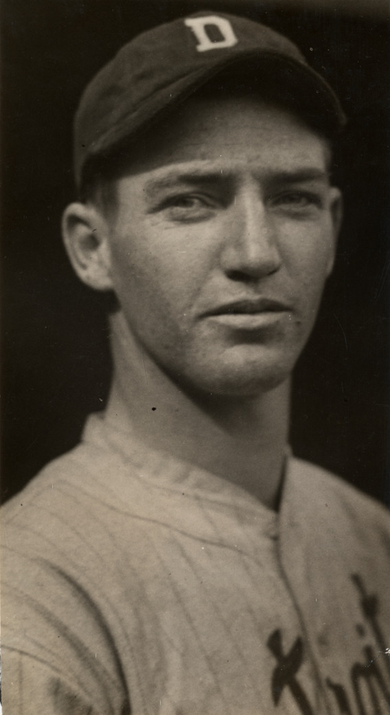 Portrait of Detroit Tigers pitcher Schoolboy Rowe. Handwritten on back: "Rowe, Lynwood T. Detroit."