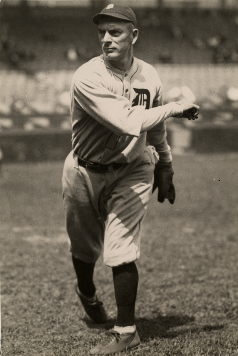 Detroit Tigers left fielder Bobby Veach throwing on field. Handwritten on back: "Veach (Detroit) Conlon."