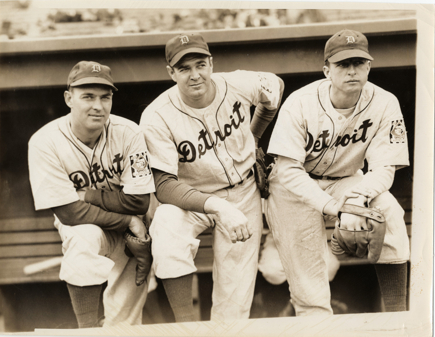 Favorite this☆ Archie McKain, Bobo Newsom and Jim Walkup Description: Group portrait of Archie McKain, Bobo Newsom and Jim Walkup, pitchers for the Detroit Tigers. Typed on back: "Photo by Leslie R. Jones." Handwritten on back: "L. to r. Archie McKain, Bob Newsom, Jim Walkup, 1938 [sic]." Details Resource ID: hr005151 Creator: Jones, Leslie R. Subject: McKain, Archie (Archie Richard), 1911-1985 Newsom, Bobo (Louis Norman), 1907-1962 Walkup, Jim (James Elton), 1909-1997 Pitchers (Baseball)--Michigan--Detroit Detroit Tigers (Baseball team) Photographic prints Date Issued: 1939 Format: 1 photographic print ; 8 x 10 in. Member of: Ernie Harwell Sports Collection Filing Location: Photographs-Teams-Detroit Tigers Rights: Physical rights are retained by DPL. Copyright is retained in accordance with U.S. copyright laws.