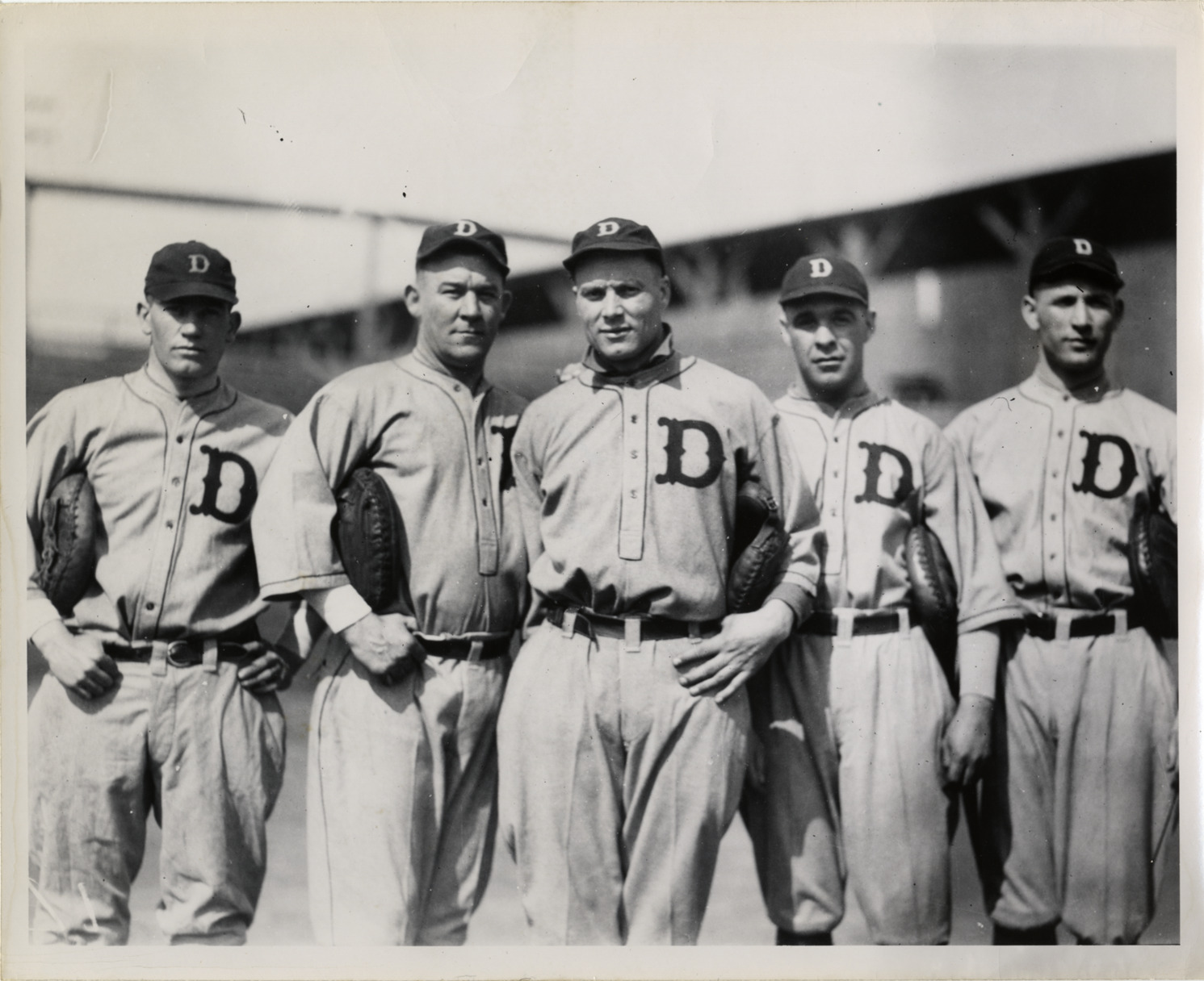 Favorite this☆ Detroit Tigers baseball players Description: Group portrait of Detroit Tigers baseball players. Details Resource ID: hr005170 Subject: Detroit Tigers (Baseball team) Baseball players--Michigan--Detroit Photographic prints Date Issued: Unknown year Format: 1 photographic print ; 8.25 x 10 in. Member of: Ernie Harwell Sports Collection Filing Location: Photographs-Teams-Detroit Tigers Rights: Physical rights are retained by DPL. Copyright is retained in accordance with U.S. copyright laws.