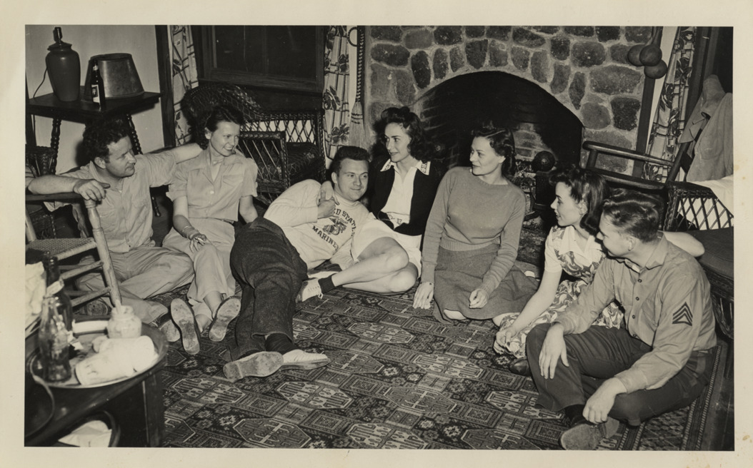 Favorite this☆ Ernie Harwell and friends Description: View of Ernie Harwell and friends seated on floor in front of fireplace; Harwell wears United States Marines sweatshirt. Details Resource ID: hr005270 Subject: Harwell, Ernie Harwell, Ernie--Friends and associates Photographic prints Date Issued: Unknown year Format: 1 photographic print ; 4.5 x 7 in. Member of: Ernie Harwell Sports Collection Filing Location: Photographs-Harwell, Ernie Rights: Physical rights are retained by DPL. Copyright is retained in accordance with U.S. copyright laws.