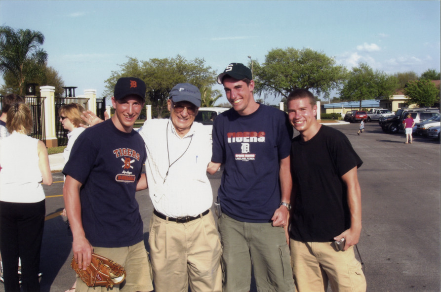 Favorite this☆ Ernie Harwell and fans Description: View of Ernie Harwell posing with three fans; two young men wear Detroit Tigers t-shirts. Details Resource ID: hr005320 Subject: Harwell, Ernie Baseball fans--Michigan--Detroit Photographic prints Date Issued: Unknown year Format: 1 photographic print : col. ; 4 x 6 in. Member of: Ernie Harwell Sports Collection Filing Location: Photographs-Harwell, Ernie Rights: Physical rights are retained by DPL. Copyright is retained in accordance with U.S. copyright laws.