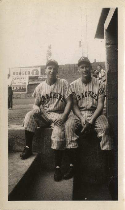 Favorite this☆ Charlie Glock and Ernie Logan, Atlanta Crackers Description: View of Charlie Glock and Ernie Logan, baseball players for the Atlanta Crackers, sitting in dugout. Stamped on back: "Lane-Liggett Drug Stores, Foto Dept., Sep 12, 1947." Details Resource ID: hr005366 Subject: Glock, Charlie (Charles), 1914- Logan, Ernie (Ernest William), 1923-2009 Atlanta Crackers (Baseball team) Baseball players--Georgia--Atlanta Photographic prints Date Issued: 1947 Format: 1 photographic print ; 4.75 x 2.75 in. Member of: Ernie Harwell Sports Collection Filing Location: Photographs-Teams-Atlanta Crackers Rights: Physical rights are retained by DPL. Copyright is retained in accordance with U.S. copyright laws.