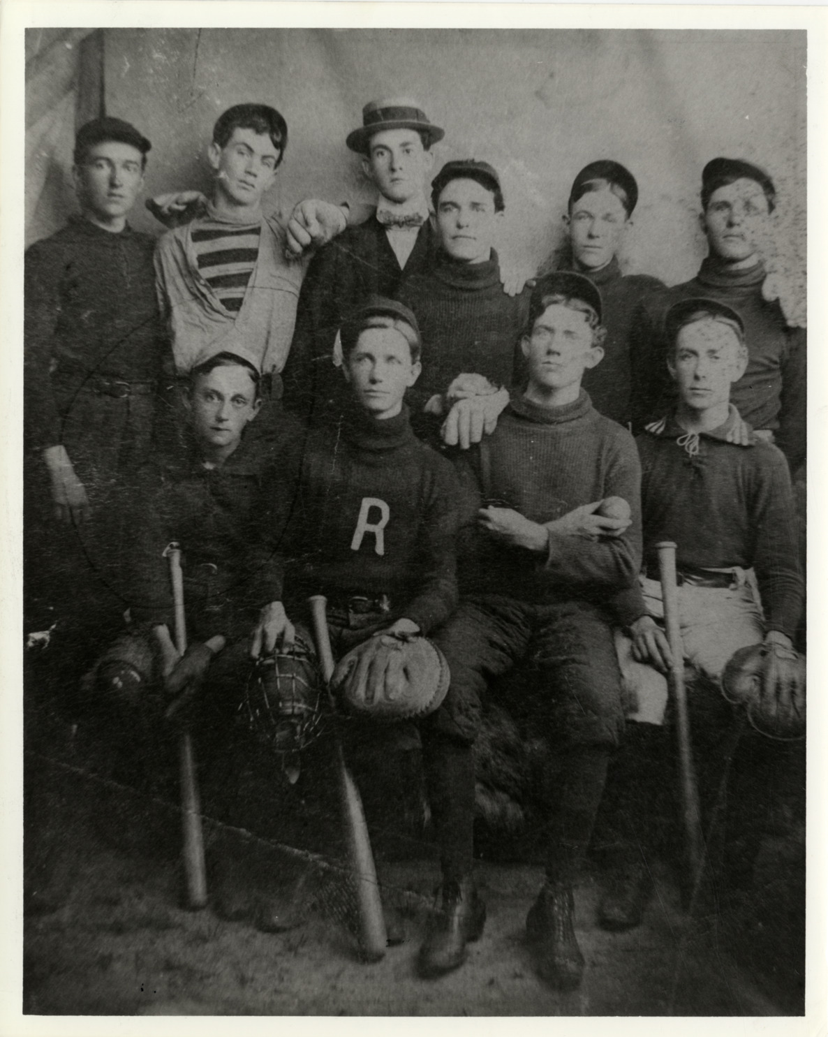 Favorite this☆ Ty Cobb posing with Royston Reds baseball team Description: View of Ty Cobb posing with members of the Royston Reds baseball team. Players in first row pose with baseball bats and gloves. Label on back: "Royston Red's baseball team." Handwritten on back: "Cobb, Ty (seated 1st row, far left)." Details Resource ID: hr005378 Subject: Cobb, Ty, 1886-1961 Cobb, Ty, 1886-1961--Childhood and youth Baseball teams--Georgia--Royston Baseball players--Georgia--Royston Photographic prints Date Issued: Unknown year Format: 1 photographic print ; 10 x 8 in. Member of: Ernie Harwell Sports Collection Filing Location: Photographs-Biography-Cobb, Tyrus (Ty) Rights: Physical rights are retained by DPL. Copyright is retained in accordance with U.S. copyright laws.