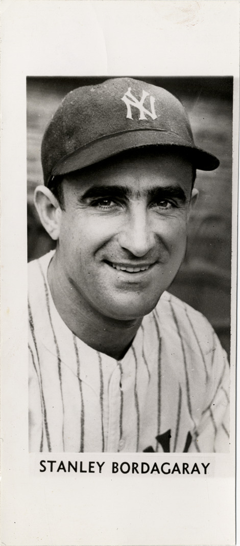 Favorite this☆ Frenchy Bordagaray Description: Portrait of Frenchy Bordagaray, baseball player for the New York Yankees. Printed on front: "Stanley Bordagaray." Handwritten on back: "Stanley Bordagaray, Yanks outfielder." Details Resource ID: hr005451 Subject: Bordagaray, Frenchy (Stanley George), 1910-2000 Baseball players--New York (State)--New York New York Yankees (Baseball team) Photographic prints Date Issued: 1941 Format: 1 photographic print ; 7.25 x 3 in. Member of: Ernie Harwell Sports Collection Filing Location: Photographs-Biography-Bordagaray, Stanley (Frenchy) Rights: Physical rights are retained by DPL. Copyright is retained in accordance with U.S. copyright laws.