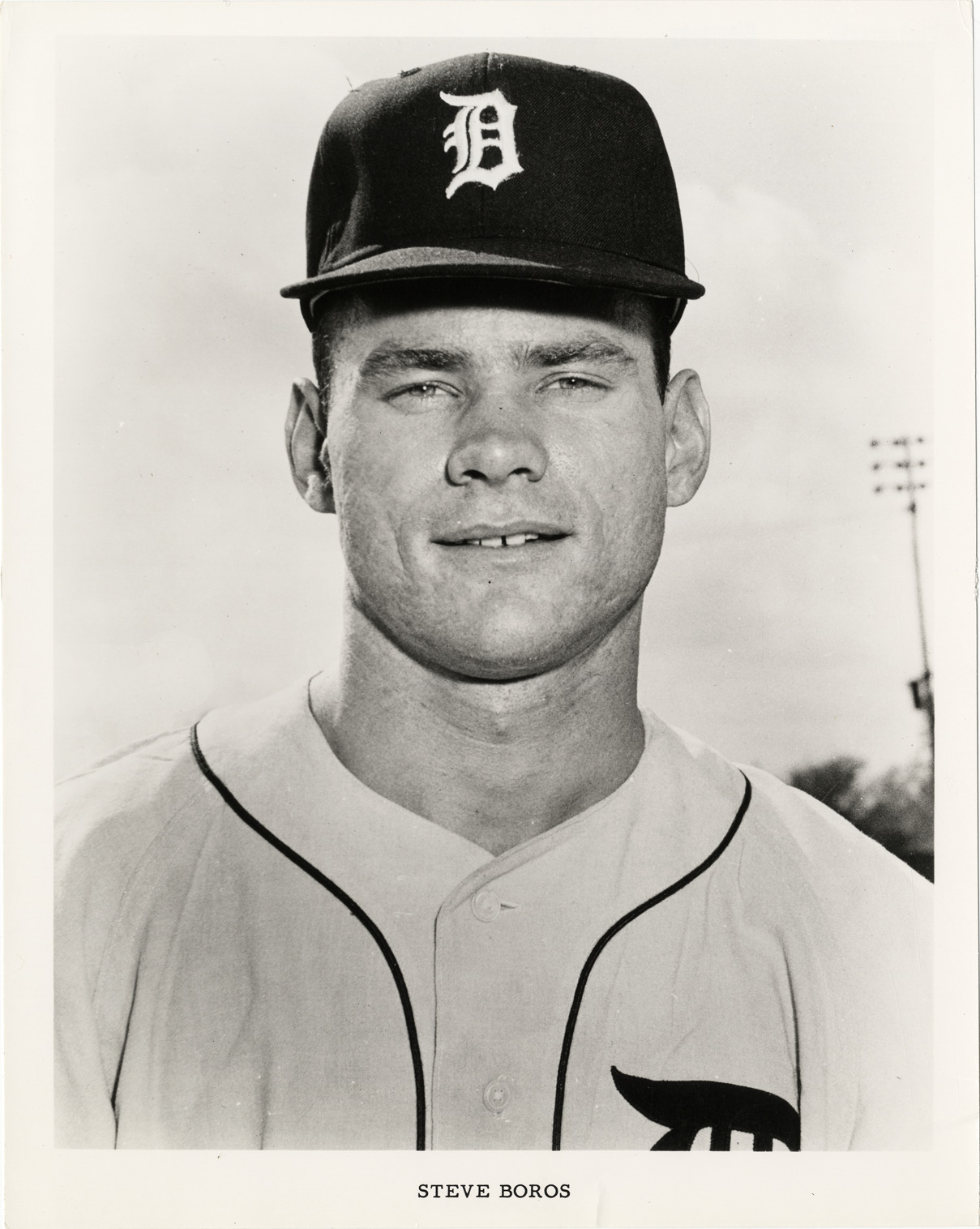 Favorite this☆ Steve Boros Description: Portrait of Steve Boros, baseball player for the Detroit Tigers. Printed on front: "Steve Boros." Details Resource ID: hr005487 Subject: Boros, Steve (Stephen), 1936-2010 Baseball players--Michigan--Detroit Detroit Tigers (Baseball team) Photographic prints Date Issued: 1957 to 1962 Format: 1 photographic print ; 10 x 8 in. Member of: Ernie Harwell Sports Collection Filing Location: Photographs-Biography-Boros, Steve Rights: Physical rights are retained by DPL. Copyright is retained in accordance with U.S. copyright laws.