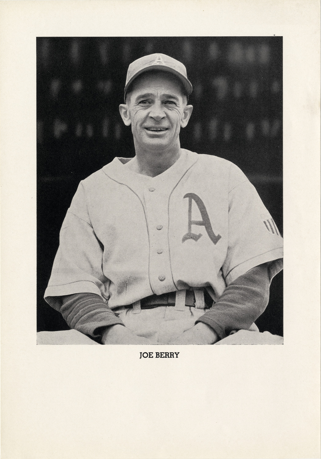 Favorite this☆ Joe Berry Description: View of Joe Berry, pitcher for the Philadelphia Athletics. Printed on front: "Joe Berry." Details Resource ID: hr005511 Subject: Berry, Joe (Jonas Arthur), 1904-1958 Pitchers (Baseball)--Pennsylvania--Philadelphia Philadelphia Athletics (Baseball team) Photographic prints Date Issued: 1944 to 1946 Format: 1 photographic print ; 10 x 7 in. Member of: Ernie Harwell Sports Collection Filing Location: Photographs-Biography-Berry, Joe Rights: Physical rights are retained by DPL. Copyright is retained in accordance with U.S. copyright laws.