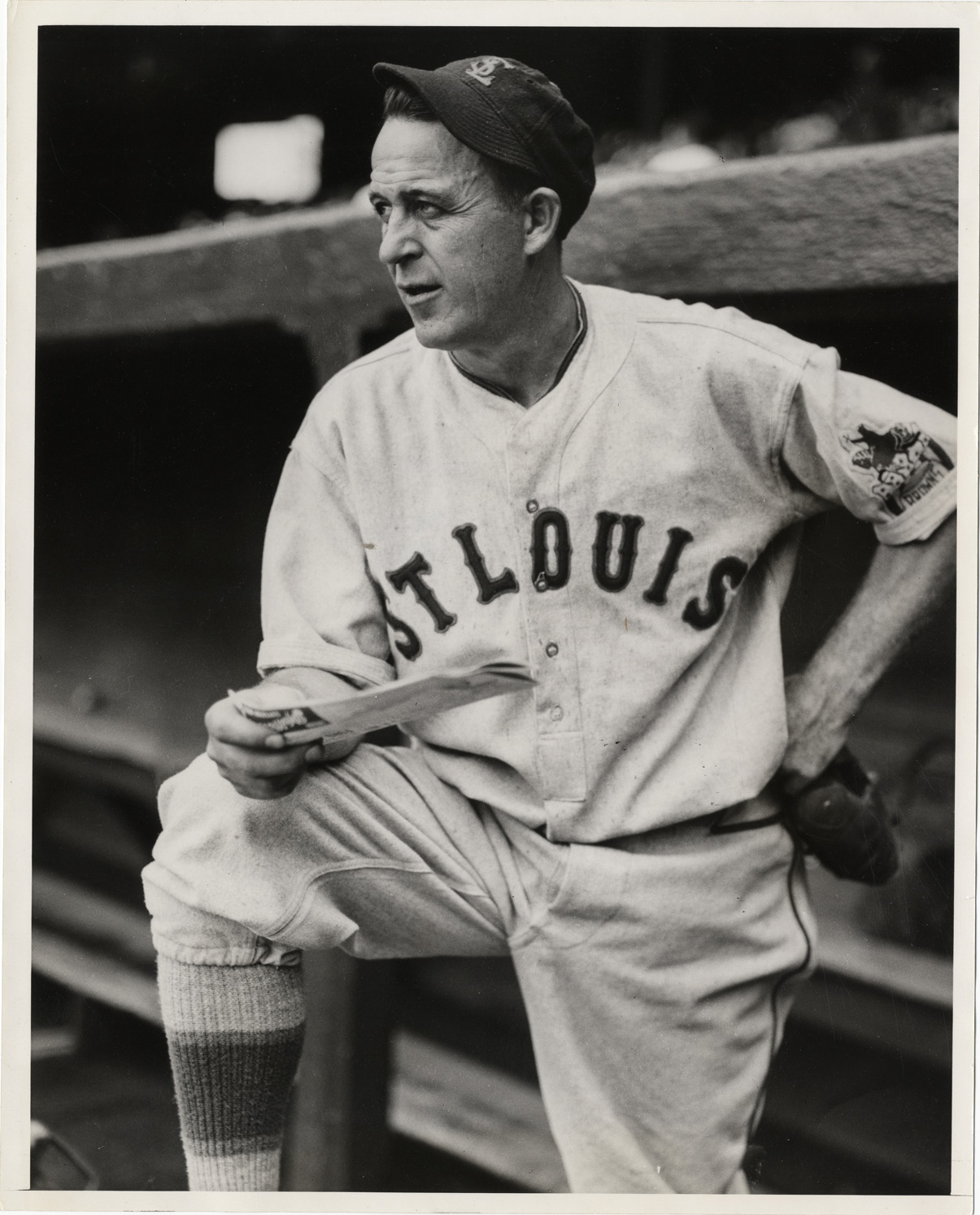 Favorite this☆ Jim Bottomley Description: View of Jim Bottomley, baseball player for the St. Louis Browns. Handwritten on back: "Jim Bottomley, manager, St. Louis Browns." Details Resource ID: hr005518 Subject: Bottomley, Jim (James Leroy), 1900-1959 Baseball players--Missouri--Saint Louis St. Louis Browns (Baseball team) Photographic prints Date Issued: 1936 to 1937 Format: 1 photographic print ; 10 x 8 in. Member of: Ernie Harwell Sports Collection Filing Location: Photographs-Biography-Bottomley, James Rights: Physical rights are retained by DPL. Copyright is retained in accordance with U.S. copyright laws.