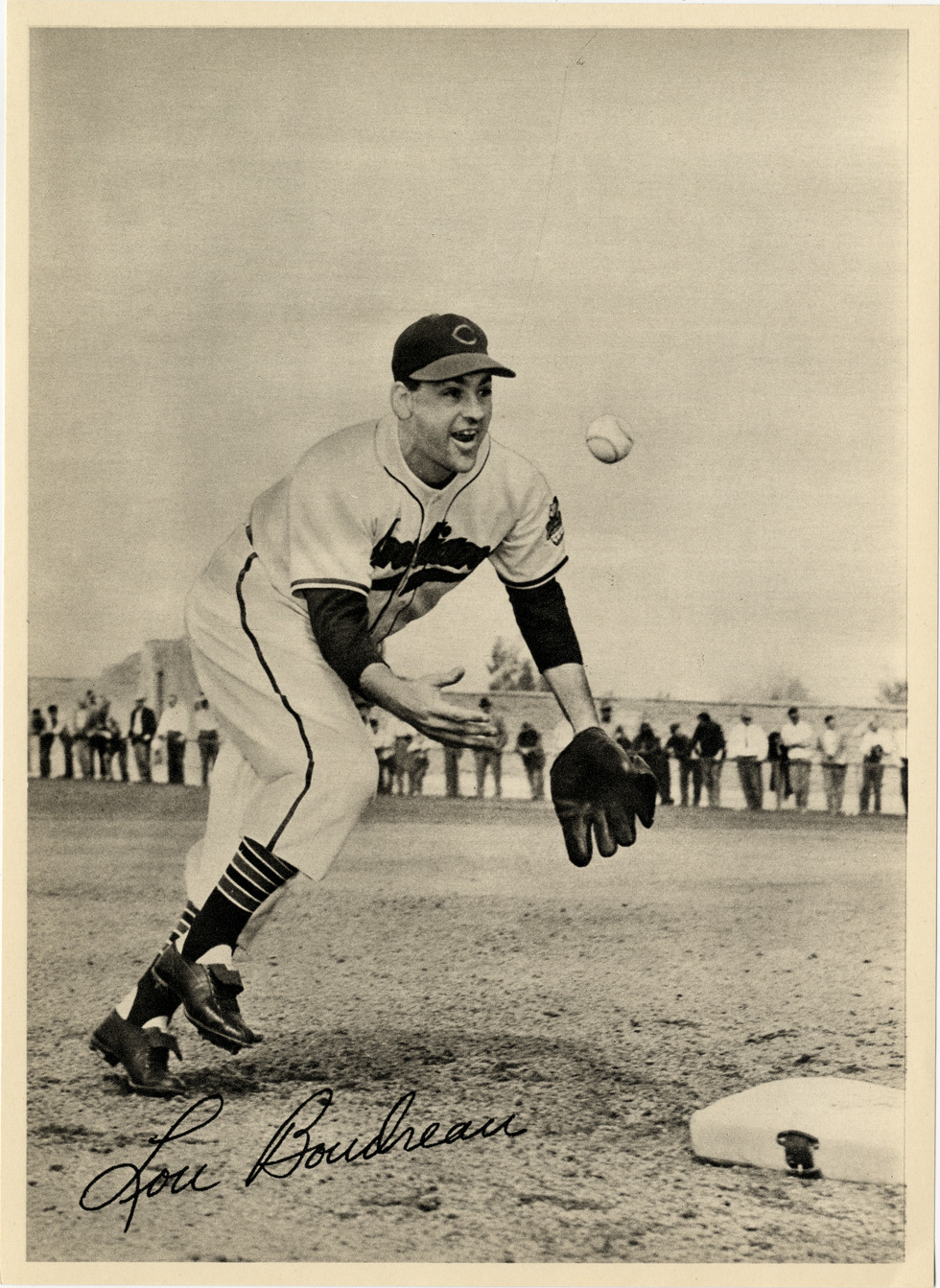 Favorite this☆ Lou Boudreau Description: View of Lou Boudreau, baseball player for the Cleveland Indians. Facsimile signature on front: "Lou Boudreau." Details Resource ID: hr005525 Subject: Boudreau, Lou, 1917-2001 Baseball players--Ohio--Cleveland Cleveland Indians (Baseball team) Photographic prints Date Issued: 1938 to 1950 Format: 1 photographic print ; 9 x 6.5 in. Member of: Ernie Harwell Sports Collection Filing Location: Photographs-Biography-Boudreau, Lou Rights: Physical rights are retained by DPL. Copyright is retained in accordance with U.S. copyright laws.