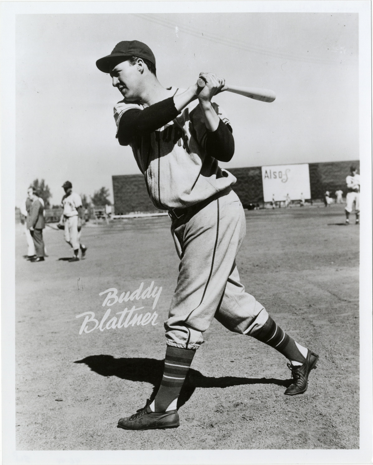 Favorite this☆ Buddy Blattner Description: View of Buddy Blattner, baseball player for the New York Giants, at bat. Printed on front: "Buddy Blattner." Details Resource ID: hr005563 Subject: Blattner, Buddy, 1920-2009 Baseball players--New York (State)--New York New York Giants (Baseball team) Photographic prints Date Issued: 1946 to 1948 Format: 1 photographic print ; 10 x 8 in. Member of: Ernie Harwell Sports Collection Filing Location: Photographs-Biography-Blattner, Buddy Rights: Physical rights are retained by DPL. Copyright is retained in accordance with U.S. copyright laws.