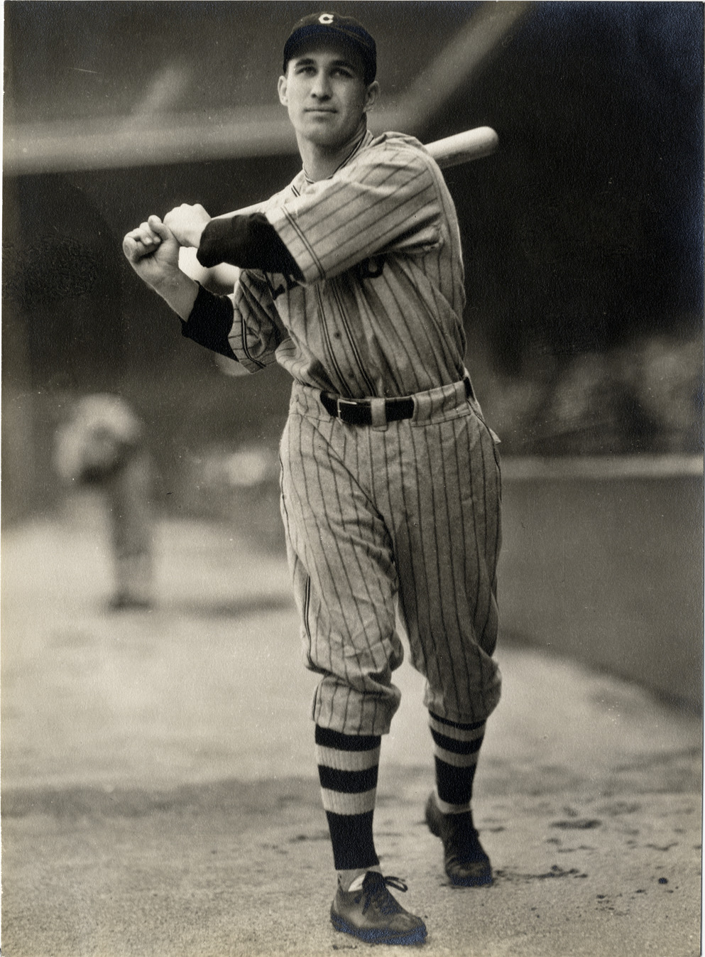 Favorite this☆ Bruce Campbell Description: View of Bruce Campbell, baseball player for the Cleveland Indians, holding a baseball bat. Stamped on back: "Geo. Burke, 847 Belmot Ave., Chicago." Handwritten on back: "Bruce Campbell." Details Resource ID: hr005655 Creator: Burke, George Subject: Campbell, Bruce (Bruce Douglas), 1909-1995 Baseball players--Ohio--Cleveland Cleveland Indians (Baseball team) Photographers--Illinois--Chicago Photographic prints Date Issued: 1935 to 1939 Format: 1 photographic print ; 9 x 6.75 in. Member of: Ernie Harwell Sports Collection Filing Location: Photographs-Biography-Campbell, Bruce Rights: Physical rights are retained by DPL. Copyright is retained in accordance with U.S. copyright laws.