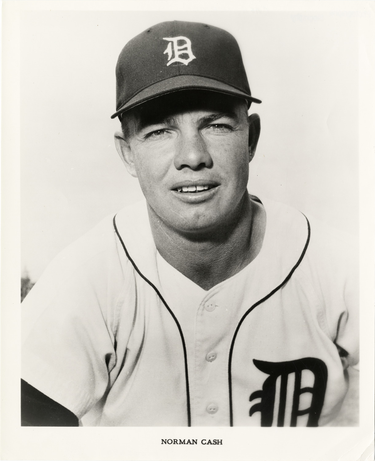 Favorite this☆ Norm Cash Description: View of Norm Cash, baseball player for the Detroit Tigers. Printed on front: "Norman Cash." Details Resource ID: hr005676 Subject: Cash, Norm (Norman Dalton), 1934-1986 Baseball players--Michigan--Detroit Detroit Tigers (Baseball team) Photographic prints Date Issued: 1960 to 1974 Format: 1 photographic print ; 10 x 8 in. Member of: Ernie Harwell Sports Collection Filing Location: Photographs-Biography-Cash, Norm Rights: Physical rights are retained by DPL. Copyright is retained in accordance with U.S. copyright laws.