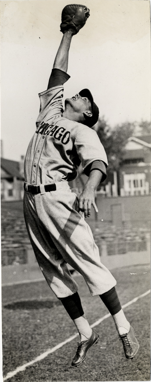 Favorite this☆ Phil Cavarretta Description: View of Phil Cavarretta, baseball player for the Chicago Cubs, catching a baseball. Stamped on back: "Photographer Nagel, reporter." Typed on back: "First base, Cubs." Handwritten on back: "Cavarretta, Philip." Details Resource ID: hr005680 Creator: Nagel Subject: Cavarretta, Phil (Philip Joseph), 1916-2010 Baseball players--Illinois--Chicago Chicago Cubs (Baseball team) Photographic prints Date Issued: 1934 to 1953 Format: 1 photographic print ; 9 x 3.5 in. Member of: Ernie Harwell Sports Collection Filing Location: Photographs-Biography-Cavarretta, Phil Rights: Physical rights are retained by DPL. Copyright is retained in accordance with U.S. copyright laws.