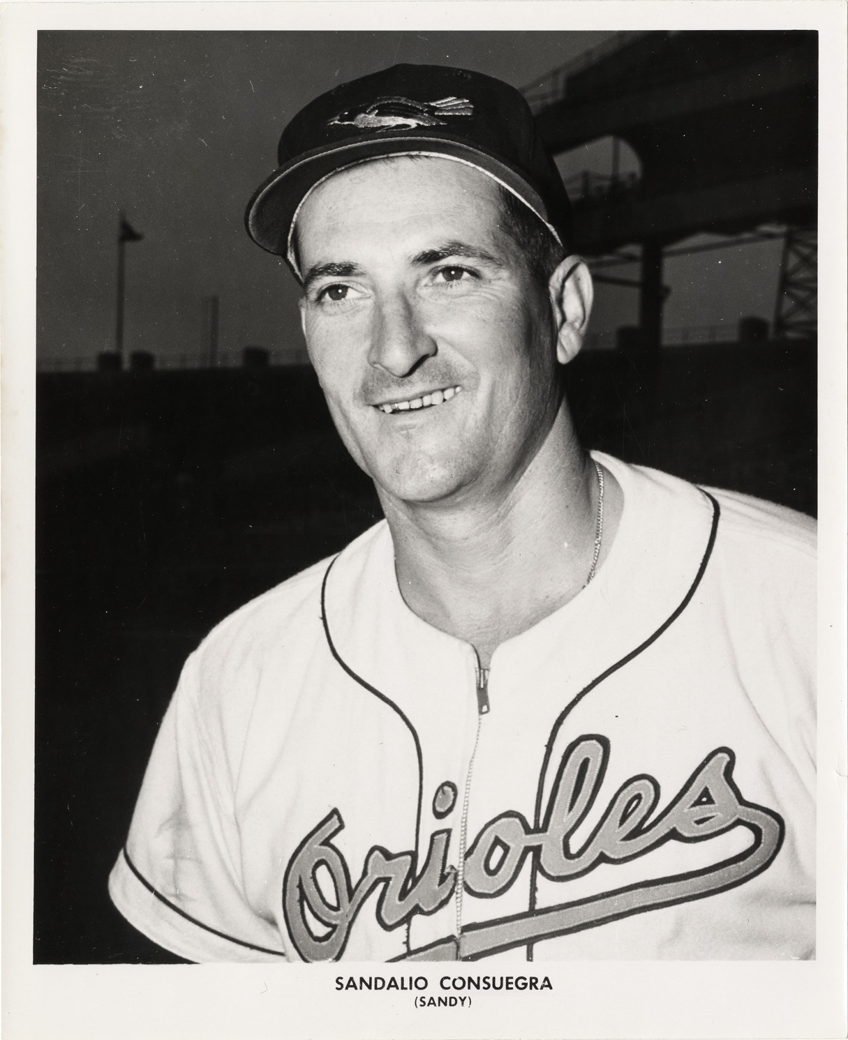 Favorite this☆ Sandy Consuegra Description: Portrait of Sandy Consuegra, pitcher for the Baltimore Orioles. Printed on front: "Sandalio Consuegra (Sandy)." Details Resource ID: hr005738 Subject: Consuegra, Sandy (Sandalio Simeon), 1920-2005 Pitchers (Baseball)--Maryland--Baltimore Baltimore Orioles (Baseball team) Photographic prints Date Issued: 1956 to 1957 Format: 1 photographic print ; 10 x 8 in. Member of: Ernie Harwell Sports Collection Filing Location: Photographs-Biography-Consuegra, Sandalio Rights: Physical rights are retained by DPL. Copyright is retained in accordance with U.S. copyright laws.