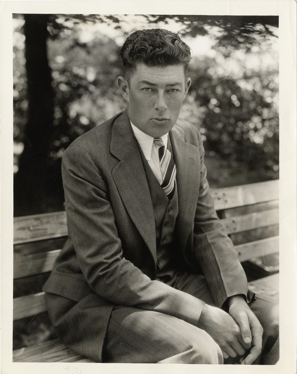 Favorite this☆ Doc Cramer Description: Portrait of Doc Cramer, baseball player for the Philadelphia Athletics, wearing a suit. Stamped on back: "Roger Cremer [sic], Phila. Athletics. American League Service Bureau. Henry P. Edwards, Mgr. Straus Bldg., Michigan Blvd., Chicago, Ill." Details Resource ID: hr005753 Subject: Cramer, Doc (Roger Maxwell), 1905-1990 Baseball players--Pennsylvania--Philadelphia Philadelphia Athletics (Baseball team) Photographic prints Date Issued: 1929 to 1935 Format: 1 photographic print ; 10 x 8 in. Member of: Ernie Harwell Sports Collection Filing Location: Photographs-Biography-Cramer, Roger (Doc) Rights: Physical rights are retained by DPL. Copyright is retained in accordance with U.S. copyright laws.