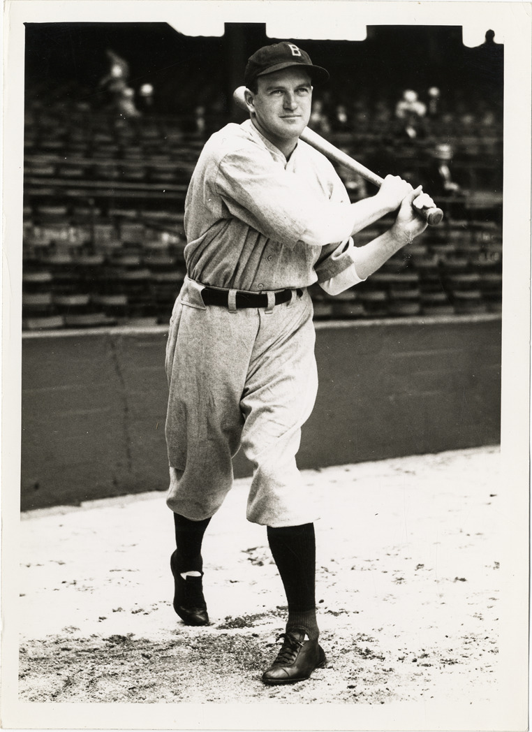 Portrait of Joe Cronin, baseball player for the Boston Red Sox, holding a baseball bat. Stamped on back: "Apex Photograph Company, 107-109 N. Wacker Drive, corner Washington St. Ph. Franklin 8165, Chicago." Typed on back: "Joe Cronin: manager Boston."