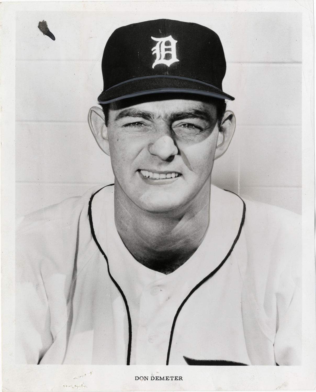 Favorite this☆ Don Demeter Description: Portrait of Don Demeter, baseball player for the Detroit Tigers. Printed on front: "Don Demeter." Details Resource ID: hr005803 Subject: Demeter, Don (Donald Lee), 1935- Baseball players--Michigan--Detroit Detroit Tigers (Baseball team) Photographic prints Date Issued: 1964 to 1965 Format: 1 photographic print ; 10 x 8 in. Member of: Ernie Harwell Sports Collection Filing Location: Photographs-Biography-Demeter, Don Rights: Physical rights are retained by DPL. Copyright is retained in accordance with U.S. copyright laws.
