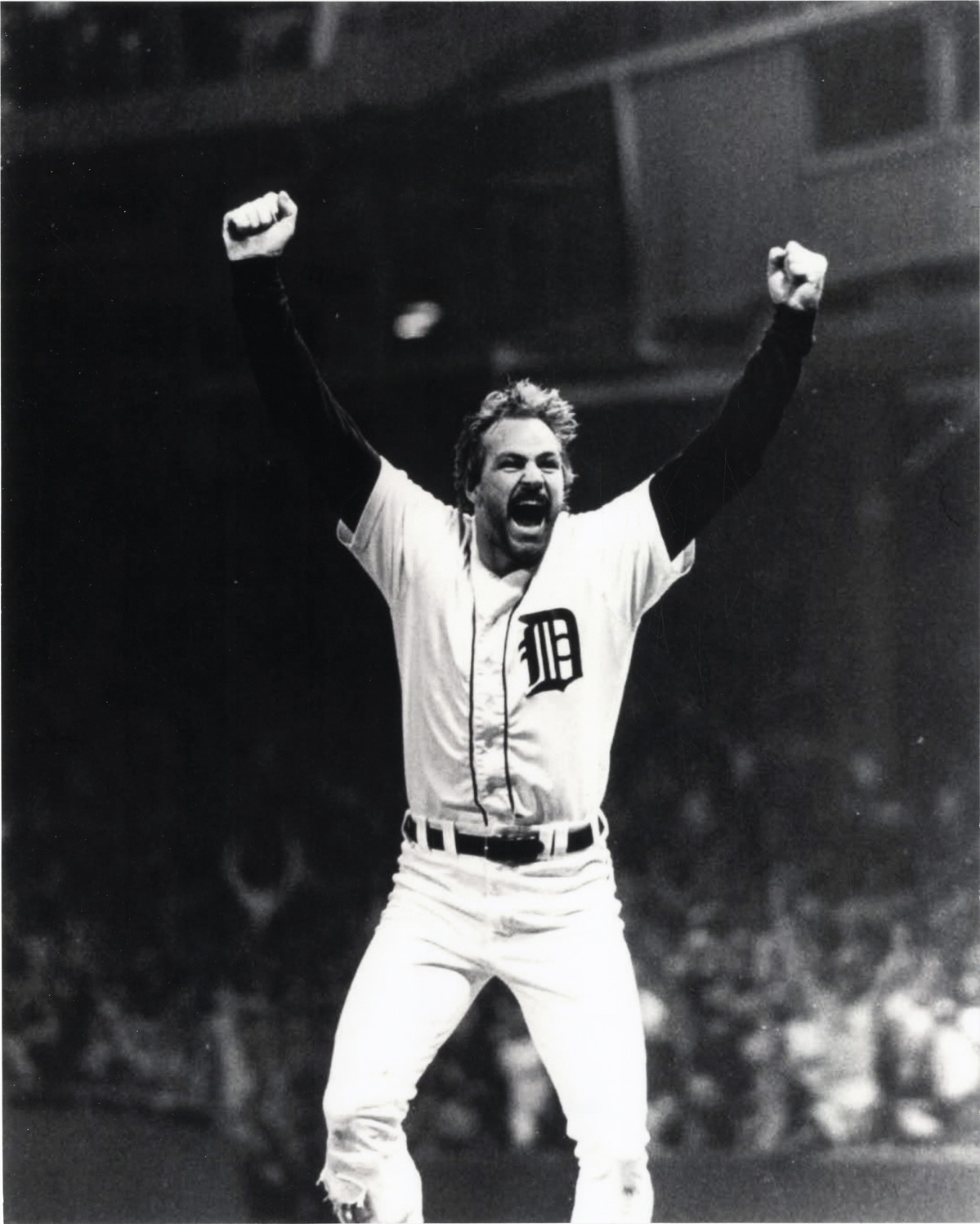 Favorite this☆ Kirk Gibson Description: View of Detroit Tigers baseball player Kirk Gibson, raising his arms, during 1984 World Series. Handwritten on back: "1984 World Series, homerun celebration." Details Resource ID: hr005824 Subject: Gibson, Kirk (Kirk Harold), 1957- Baseball players--Michigan--Detroit Detroit Tigers (Baseball team) World Series (Baseball) (1984) Photographic prints Date Issued: 1984 Format: 1 photographic print ; 10 x 8 in. Member of: Ernie Harwell Sports Collection Filing Location: Photographs-Biography-Gibson, Kirk Rights: Physical rights are retained by DPL. Copyright is retained in accordance with U.S. copyright laws.