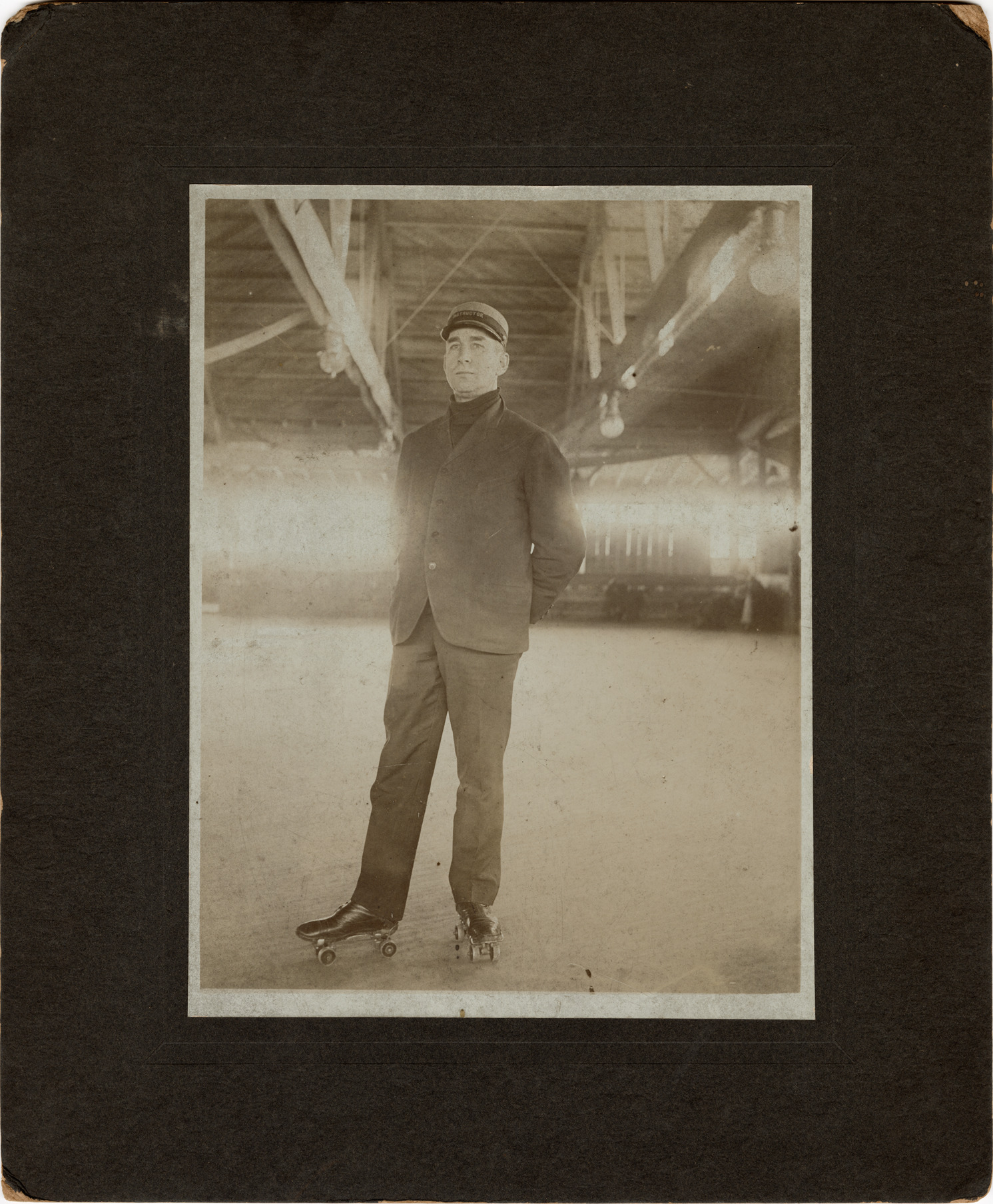 Favorite this☆ Roller skating instructor Description: View of a roller skating teacher posing on skates in rink. Stamped on back: "W.G. Hoddenott, visiting photographer, 58 Walpert Avenue, Baltimore, Md." Details Resource ID: hr005865 Creator: Hoddenott, W.G. Subject: Roller skaters Roller skating Roller skates Photographers--Maryland--Baltimore Photographic prints Date Issued: Unknown year Format: 1 photographic print mounted on mat board ; image 8.25 x 6.25 in. Member of: Ernie Harwell Sports Collection Filing Location: Photographs-Oversize Rights: Physical rights are retained by DPL. Copyright is retained in accordance with U.S. copyright laws.