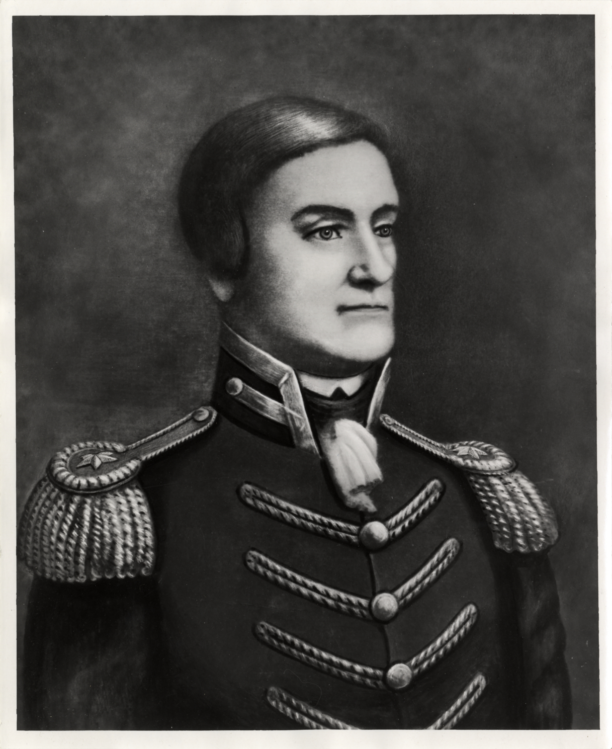 Portrait of Lewis Cass painted by John Vanderlyn. Handwritten on back: "Brig. Gen. Lewis Cass at age 31. Painted by Vanderlyn, Washington, D.C., c.1813."