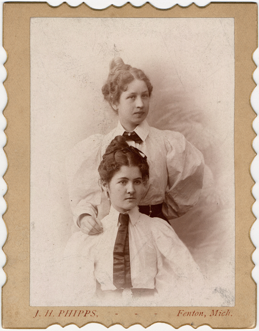 Portrait of two young women by J.H. Phipps of Fenton, Michigan