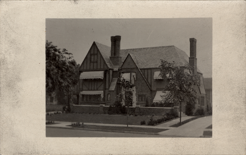Postcard of large Tudor style house. Residence of Mark Allen.