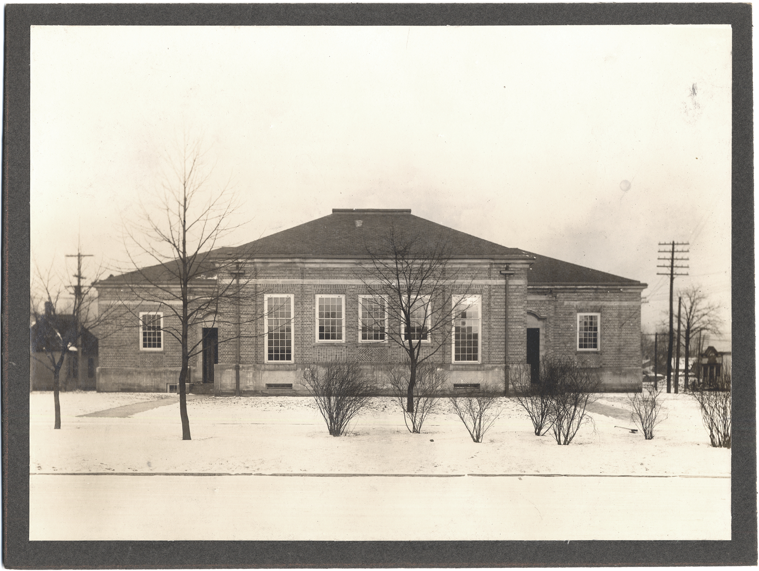 View of Bowen Branch Library, Detroit Public Library. Label on back: "Bowen Branch."